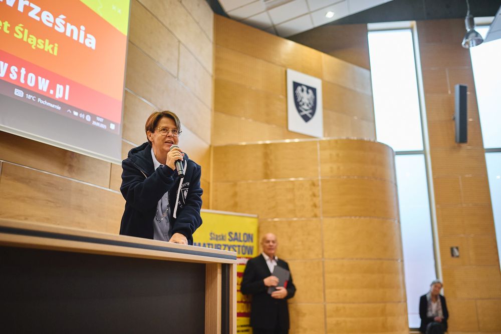 Podczas uroczystego otwarcia Salonu w imieniu rektora Uniwersytetu Śląskiego, prof. Ryszarda Koziołka zebranych gości przywitała prof. Katarzyna Trynda, prorektor ds. studenckich i kształcenia. Pani prorektor przypomniała zebranym bogatą ofertę swojej uczelni (prawie 100 kierunków) i zachęcała do studiowania na Uniwersytecie Śląskim. Przy okazji zaprosiła także na dzień otwarty uczelni 29 października.