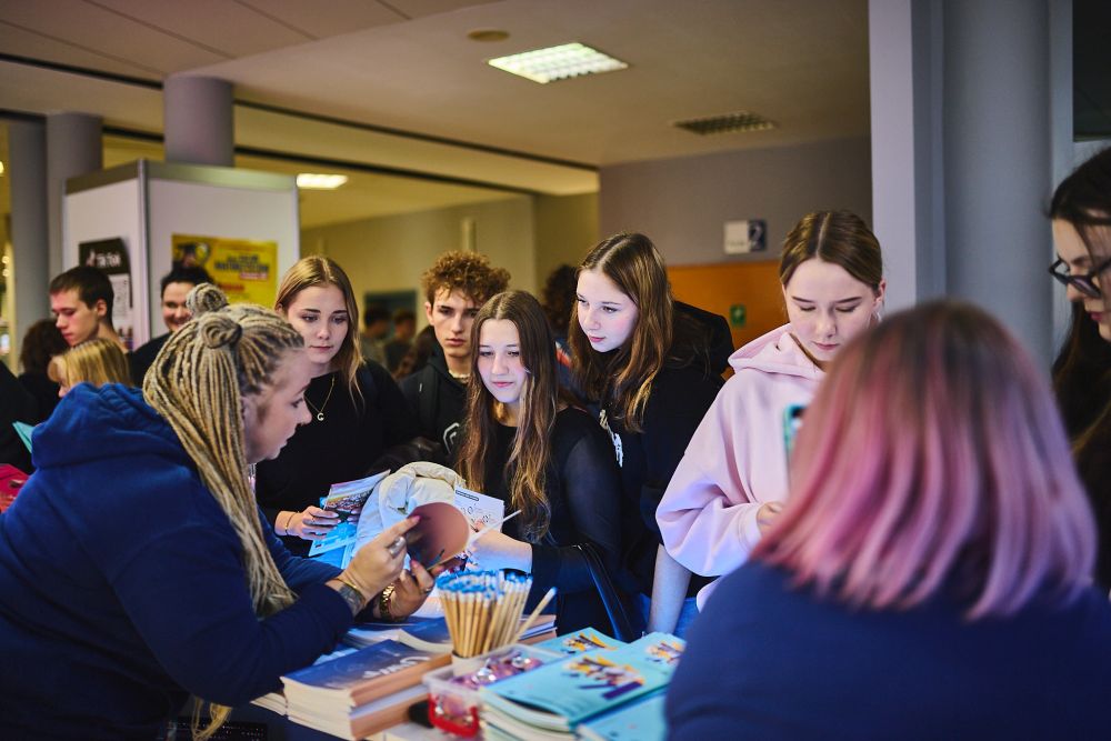 - Odbierzesz bezpłatny egzemplarz „Informatora dla Maturzystów 2026” – z aktualną ofertą studiów, zasadami rekrutacji i praktycznymi wskazówkami
